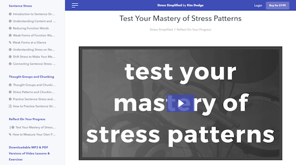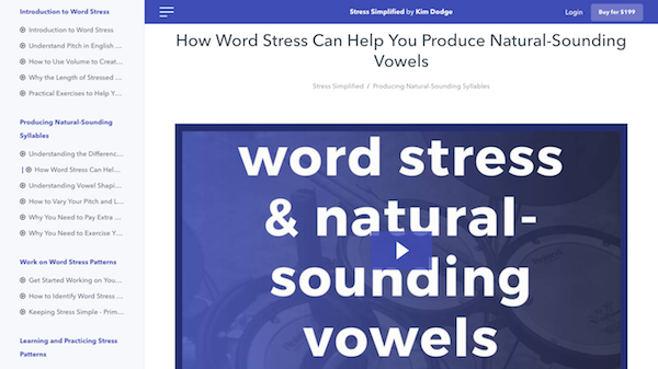 This course is exactly what I was looking for. It shows in detail how to apply stress in different situations (word, sentence, thought groups, etc). If, during the course, you have some questions or suggestions, you may contact Kim (via email or chat) and she replies carefully. I really recommend this course, especially to people that speak syllable-timed languages and want to be better understood when speaking English... and who have contact (in person or via phone) with Americans and/or other foreigners frequently, especially in the work environment.
